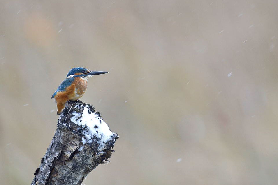 Eisvogelmännchen im Schneetreiben