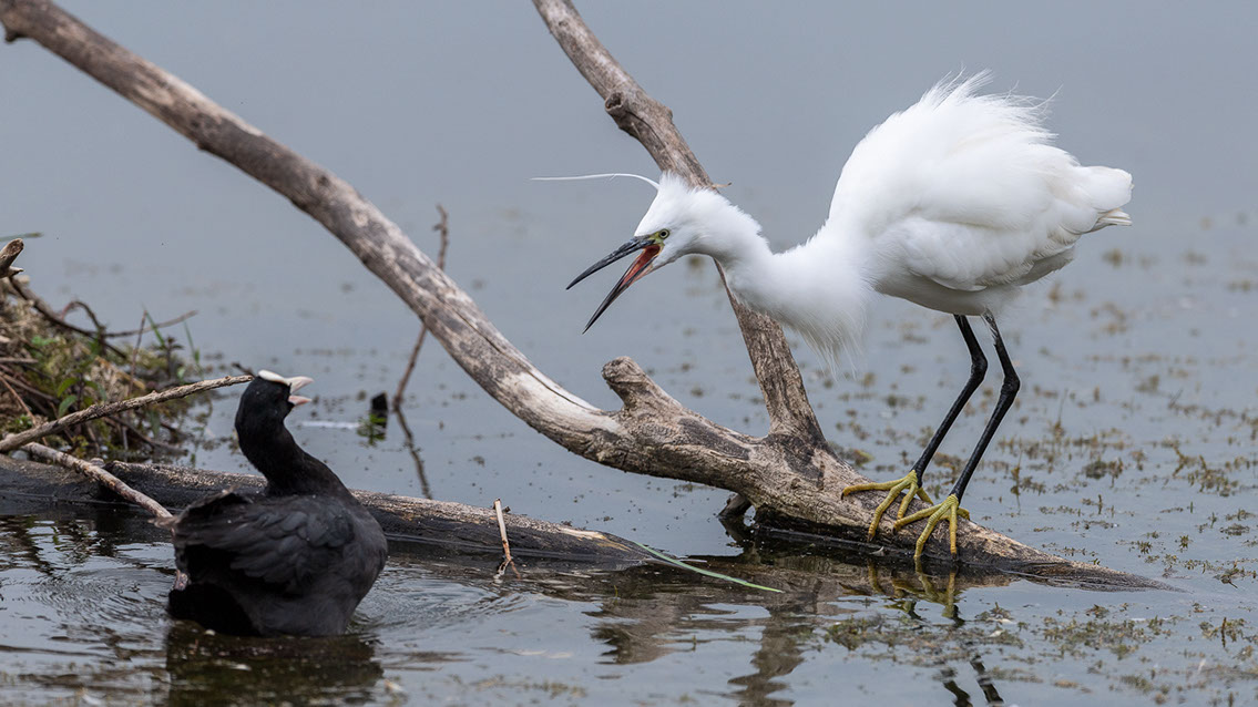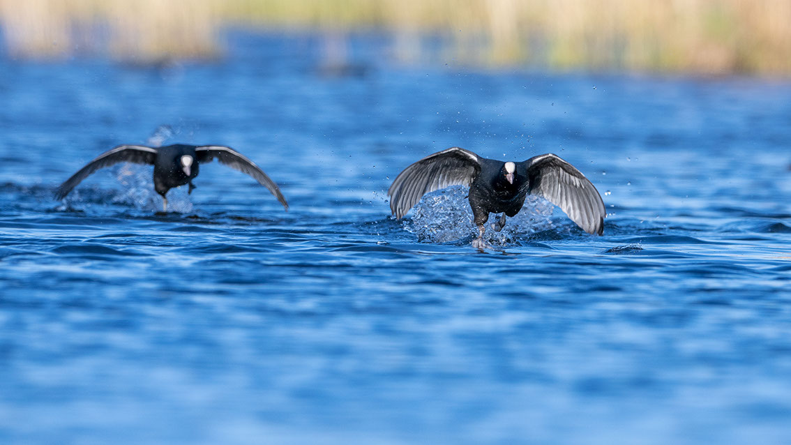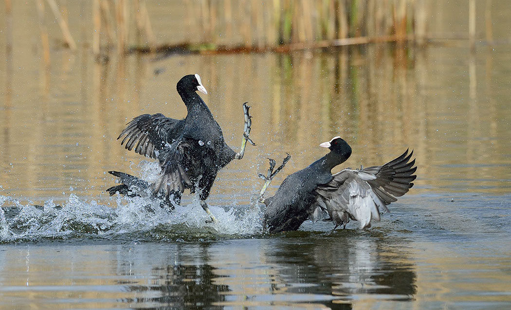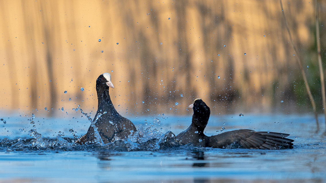 Bei den Blässhühner geht's beim Revierkampf ernst zu und her