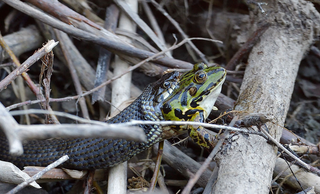Ringelnatter frisst Kaulquappe