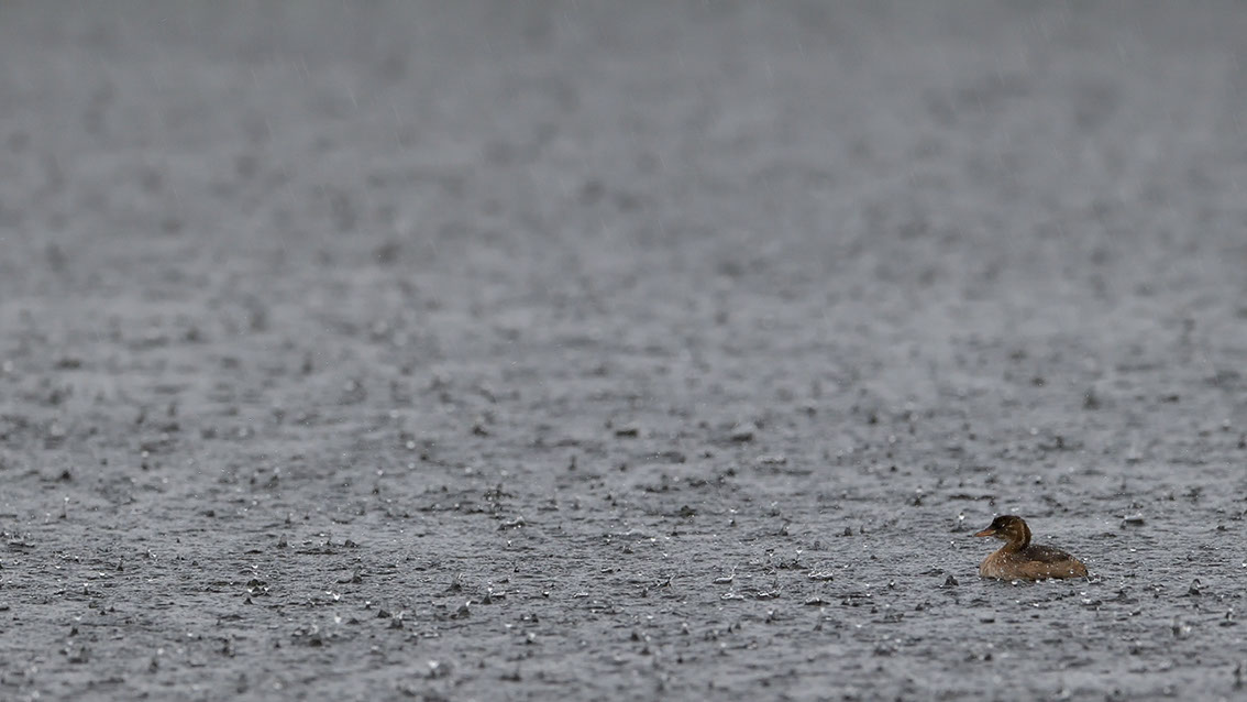 Zwergtaucher im Starkregen