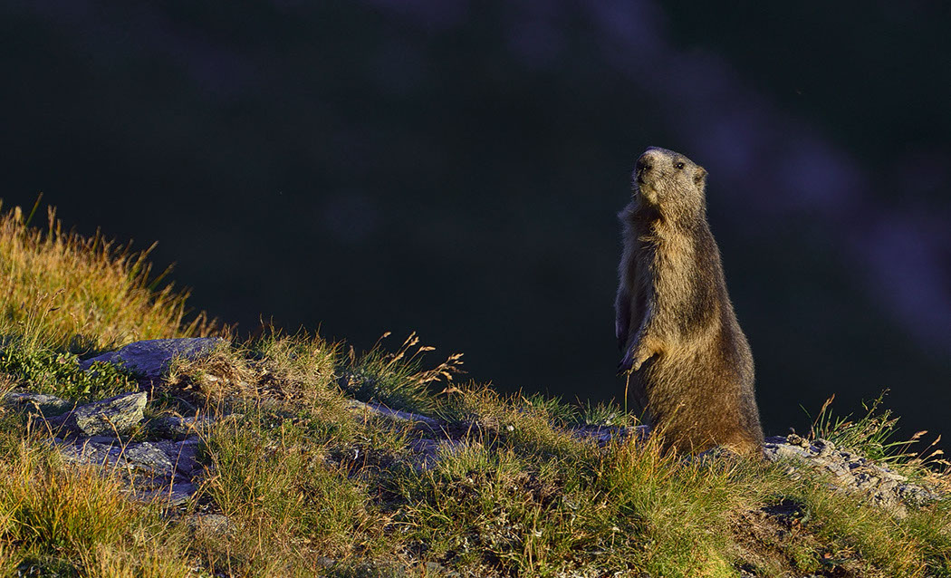 Murmeltier geniesst die letzten Sonnenstrahlen am Abend