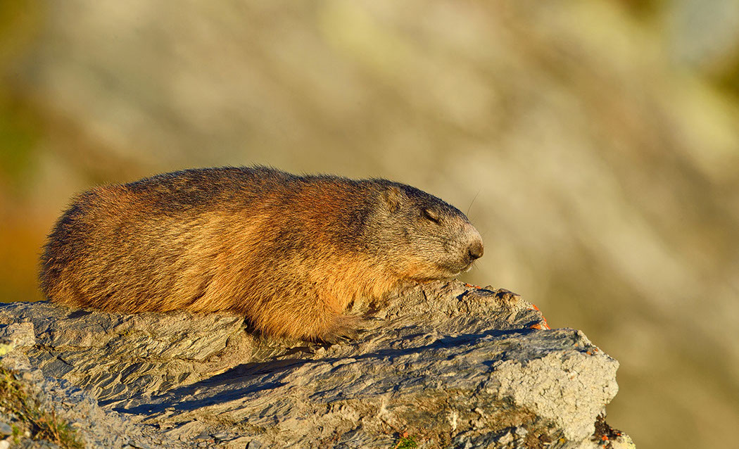 Murmeltier geniesst die letzten Sonnenstrahlen