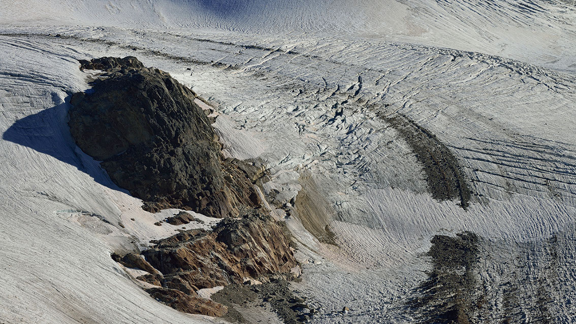 Blick vom Breithorn 4163 Meter auf die Überreste des Gornergletschers
